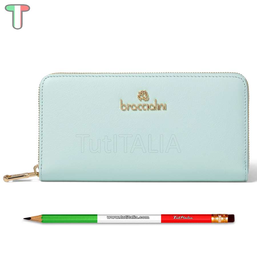 Collection 2023 SS.  Manufacturer: Braccialini.  Line: Braccialini.  Functionality: women's wallet zip around.  Material: genuine leather.  Color: green.  Warranty 2 years.  Dimensions: 19x10x2 cm.  Weight: 0.35 kg.