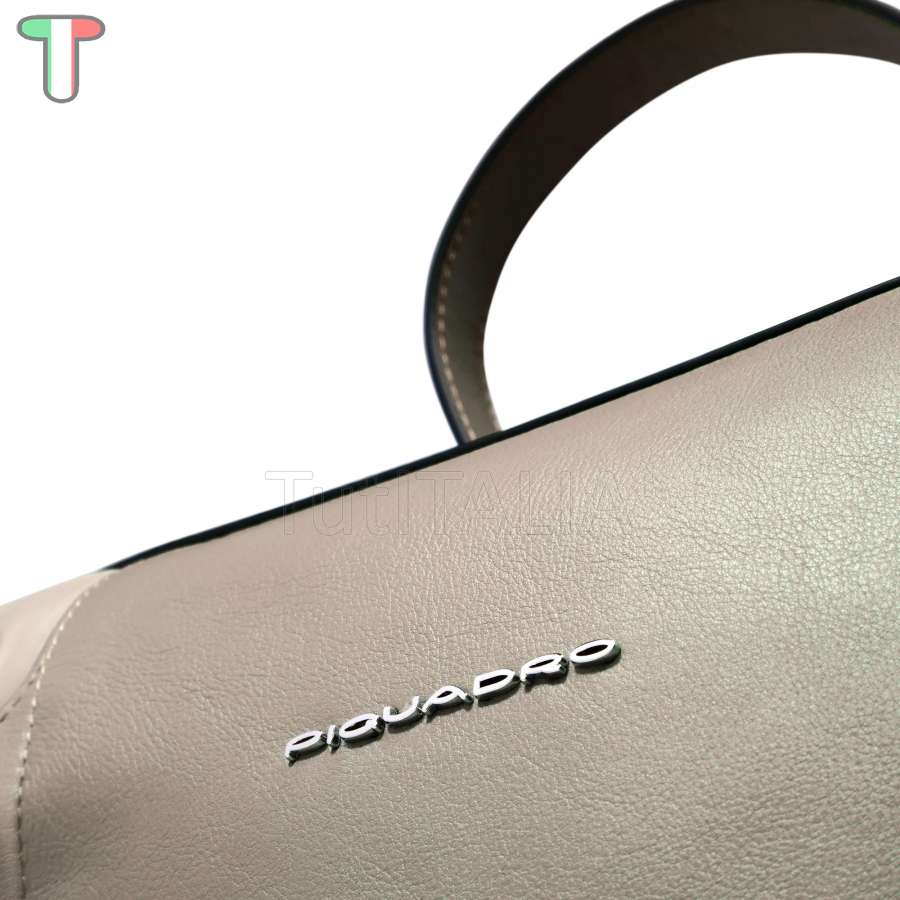 Manufacturer: Piquadro.  Functionality: women's backpack.  Material: leather and fabric.  Color: beige.  Number of compartments: 1.  Can contain: 14" laptop.  PC holder features: Shock Absorber.  Support iPad® 10,2''Air 10,9''Pro 11'': not removable.  Internal lining: 100% polyester.  Handle type: sewn.  Power bank pocket: yes.  Dimensions: 28x36.5x11 cm.  Weight: 0.76 kg.