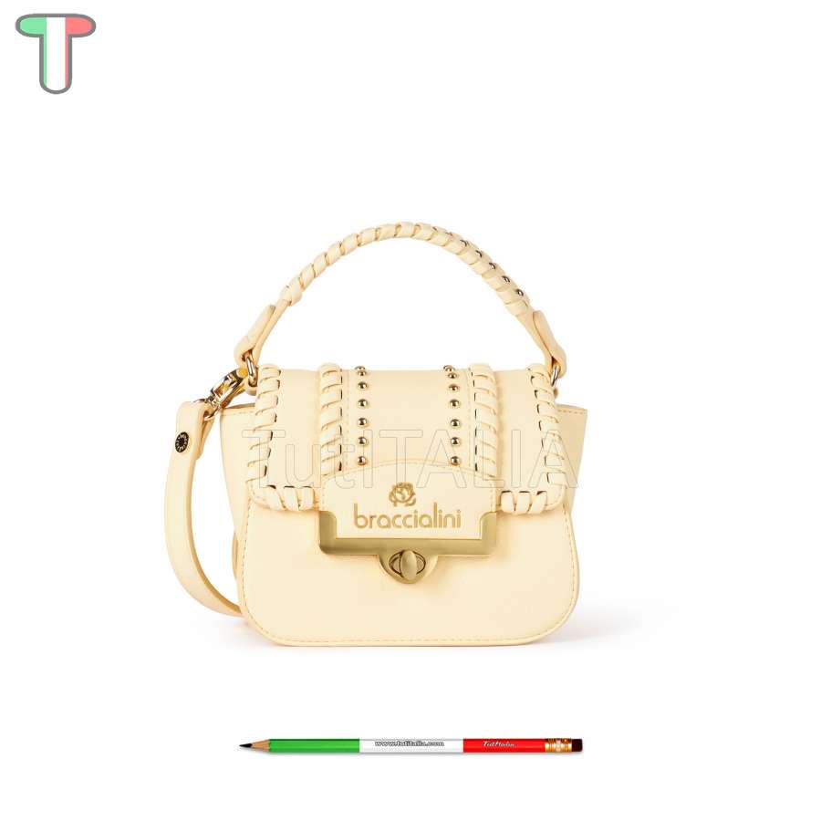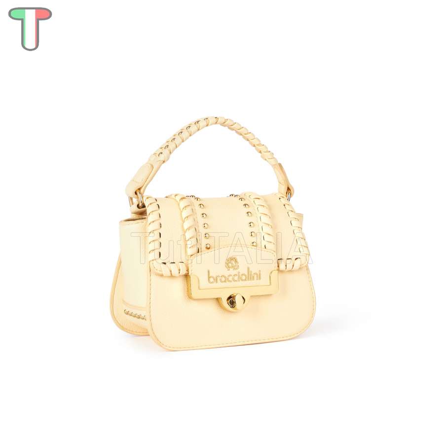 Collection 2024 SS.  Manufacturer: Braccialini.  Line: Ribbon.  Functionality: handbag.  Material: polyurethane.  Color: yellow.  Warranty 2 years.  Shoulder strap adjustable.  Dimensions: 18x14x8.5 cm.  Height of handle: 9 cm.  Weight: 0.48 kg.